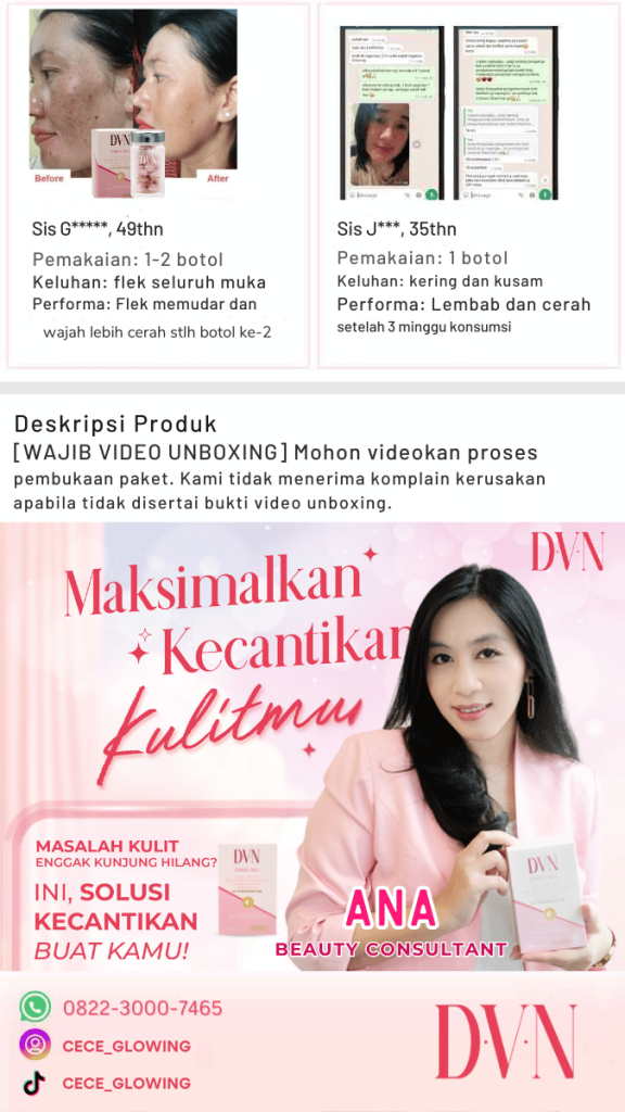 Asupan nutrisi kolagen dengan bahan impor dari Korea, Eropa, Belanda, dan Spanyol untuk kulit yang lebih bersih, lembab, dan kencang.